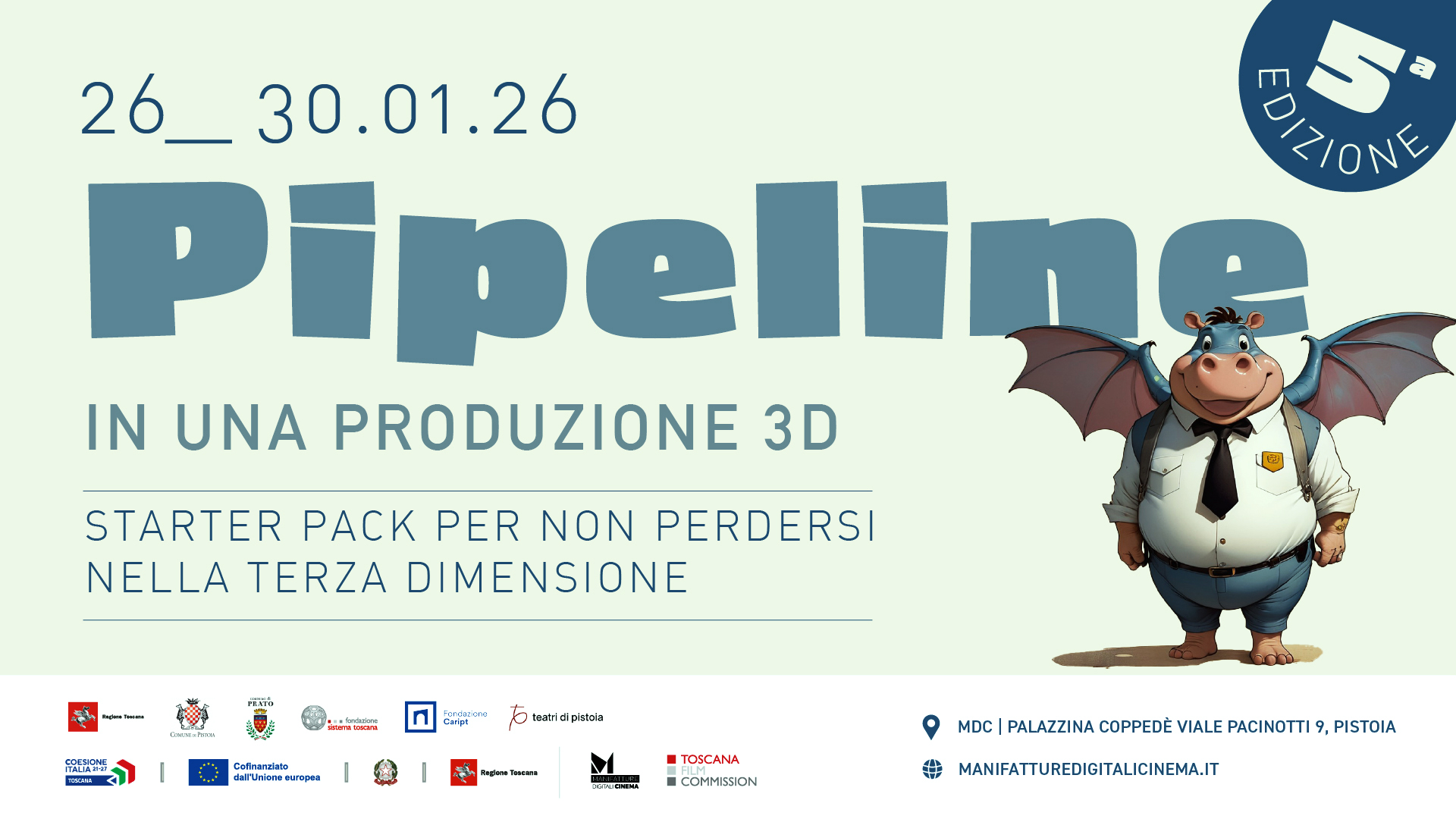 Manifatture Digitali Cinema sono infrastrutture di supporto alle produzioni audiovisive. Il progetto è di Toscana Film Commission per Regione Toscana, insieme a Comune di Prato e Comune di Pistoia che accolgono, nel centro delle loro città le due sedi MDC Prato e MDC Pistoia.
