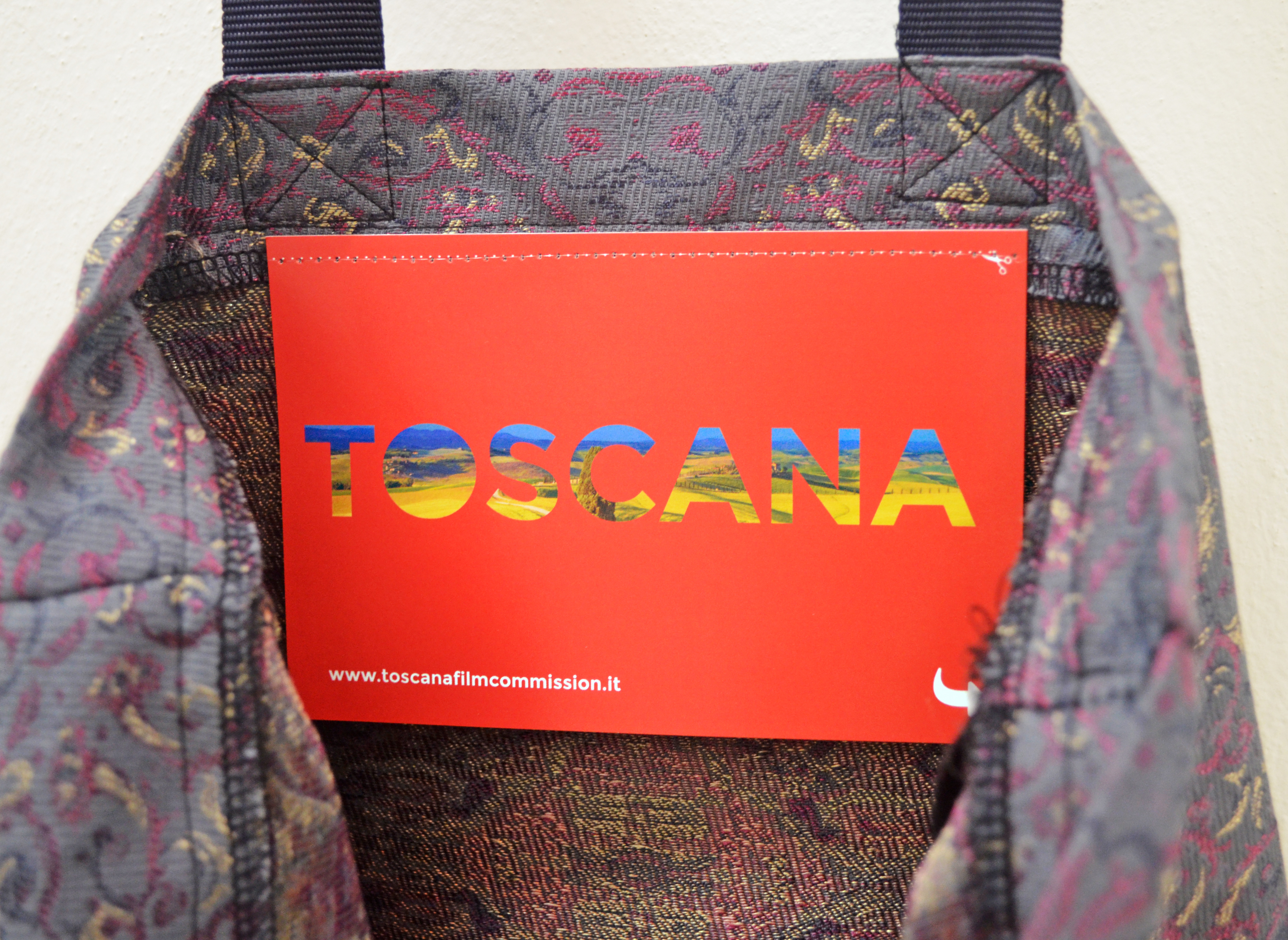 Le stoffe, sia vivaci e colorate che eleganti, sono state per l’occasione fornite da Marini Industrie Spa, altra impresa pratese di prestigio internazionale. All’interno delle shopper, una cartolina estraibile che illustra le attività di Toscana Film Commission e Manifatture Digitali Cinema (MDC), con un QR Code che rimanda al sito di MDC. Coi meravigliosi tessuti di Marini Industrie Spa, sono stati realizzati anche dei portacellulare.