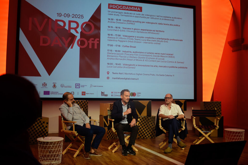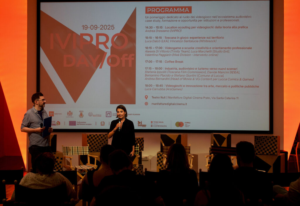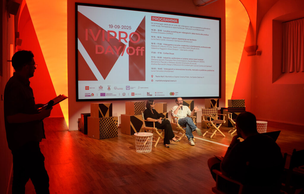 Nel solco della collaborazione tra Toscana Film Commission e IVIPRO – l’associazione dedita alla diffusione della cultura videoludica e alla valorizzazione del territorio italiano e del suo patrimonio culturale attraverso i videogiochi -, venerdì 19 settembre 2025, al Teatro Nuti di Manifatture Digitali Cinema Prato, si è tenuto IVIPRO DAY/Off, evento gratuito di avvicinamento agli IVIPRO DAYS 2025, che si svolgono a Trieste dal 30 ottobre al 1° novembre 2025.